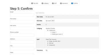 A clear checkout will allow customers to quickly verify all travel plans with lodging and golf plans.